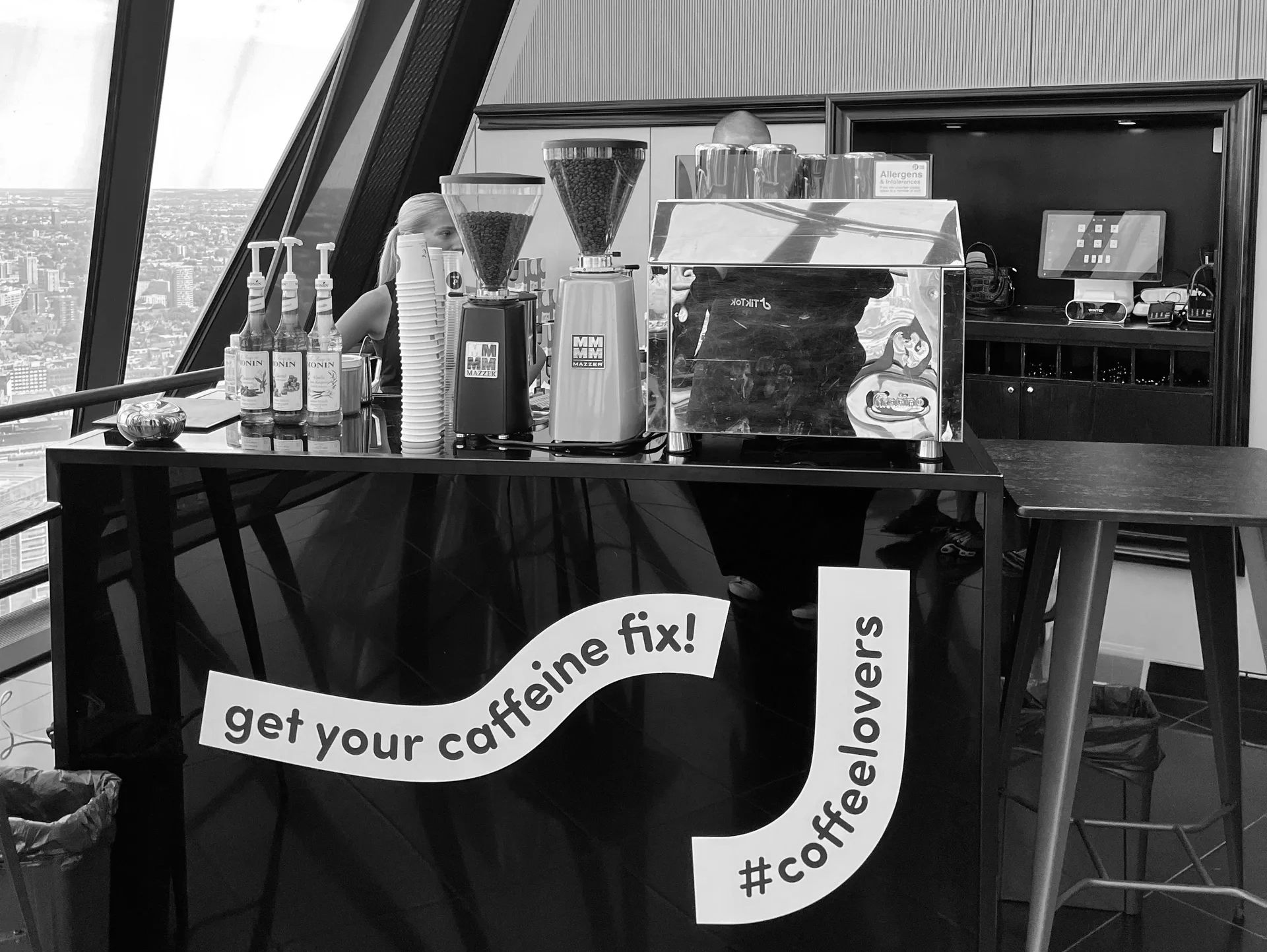 Our premium cafes, whether it is our trusty Landy, Cafe Pop Ups or Coffee Counters, are impactful but discreet. They fit with minimum effort into building receptions and showrooms, we've even been known to provide caffeine highs up in the clouds of the Gherkin, London.